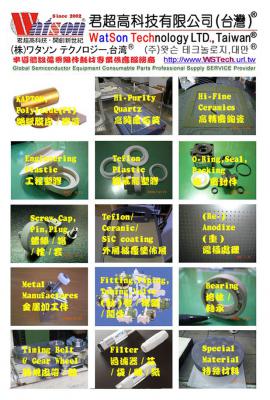 ● 產品內容:本公司專營全球半導體設備乾(Dry)、濕(Wet)製程專用之" KAPTON®(PolyImide/PI),TEFLON® 絕緣膜片/膠帶、Hi-Purity Quartz 高純度石英、Hi-Fine Ceramics 高精密陶瓷、TEFLON® Plastic 鐵氟龍塑膠、Engineering Plastic 工程塑膠、O-Ring,Seal,Packing 油/密封件、Screw,Cap,Pin,Plug (真空)螺絲/帽/栓/套、Metal Manufactures 金屬加工件、(Re-)Anodize (重)陽極處理、TEFLON®/Ceramic/SiC coating 外層披覆塗佈、Fitting,Piping,Tubing,Valve,Bellows (軟)管/接頭/閥件/風箱(波紋管)、Bearing,Coupling 軸承/培林、Timing Belt & Gear Wheel/Pulley 時規皮帶/輪、Filter/Filtration 過濾器/芯/袋/網/紙、Meter/Gauge/Regulator,Sensor/Solenoid Valve,Motor/Cylinder/Power Supply,Pump 計量器/感應器,電磁閥/馬達,汽缸,電源供應器/幫浦、Precious Metal 稀貴金屬、Special Material 特殊材料 "等,OEMs/ODM/OBM/EMS/DMS 代客開發設計監製與附加價值服務…價格便宜、品質穩定;交貨迅速、服務良好!